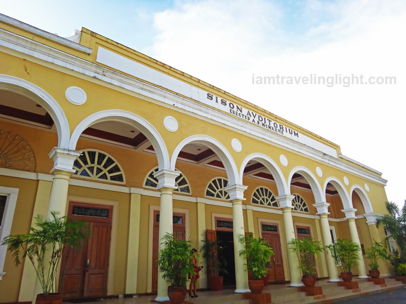 6) Sison Auditorium Another example of American architecture, this structure is quite a sight with its arches and columns. Inside, the walls and ceilings are a beautiful geometry of concrete, wood, and glass, with a majestic chandelier hanging from the highest point of the ceiling. Sison Auditorium is the famous Lingayen venue for wedding receptions, parties, and other events. In fact, this is where the wedding reception of our friend was held.